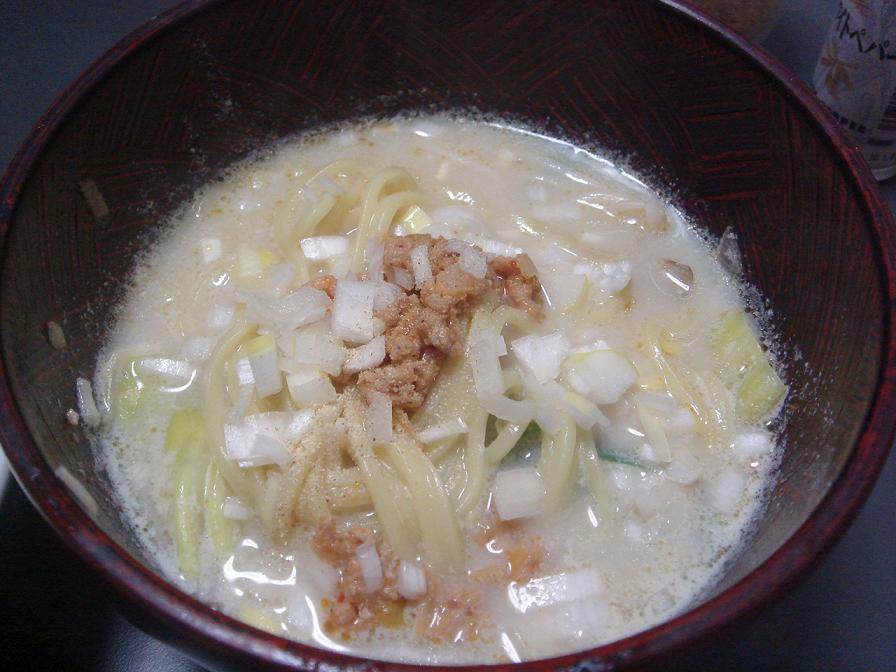 鶏がらベースの豆乳鍋に坦々麺にのっている肉味噌をトッピングして食べるのです。