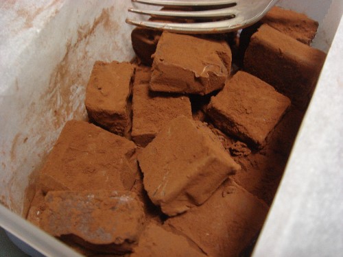 旦那くんには好物のビターチョコで生チョコを作りました。