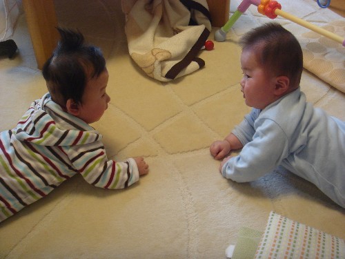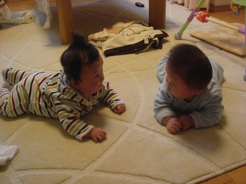 赤ちゃん同士「アーウーーウーー」と声を上げて反応しあってた。