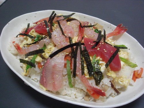 巻き寿司の代わりにちらし寿司作りました。