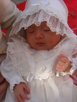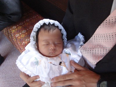 おとついのお宮参りの疲れが抜けない親子です・・・
