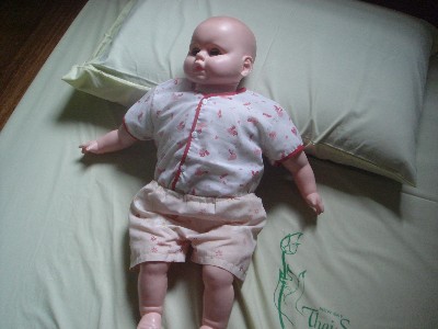 それはさておき、ホンモノの赤ちゃんでは練習できないのでここでは人形を使います。