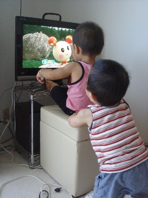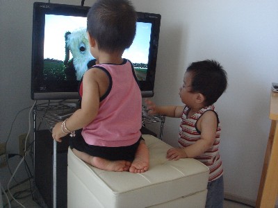 「いないいないばぁ」が始まるとテレビにかじりつく二人。
