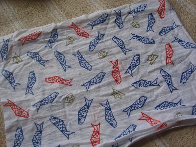 頭に載せたのはお義姉さんからもらったこいのぼり柄の手ぬぐいで折った兜。