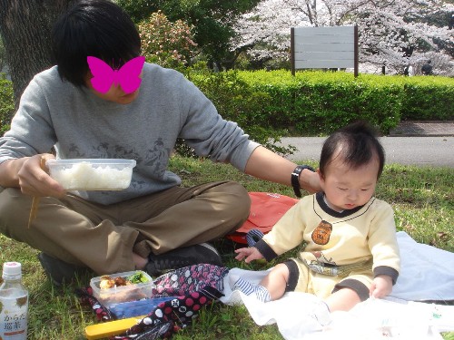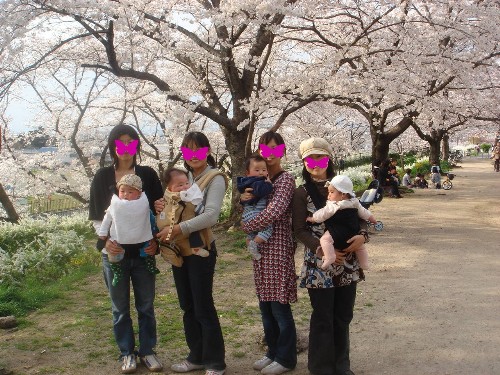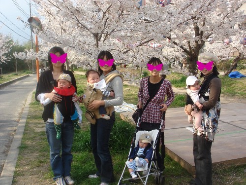 赤ちゃん連れの親子4組なので桜の下で宴会というのではなく、