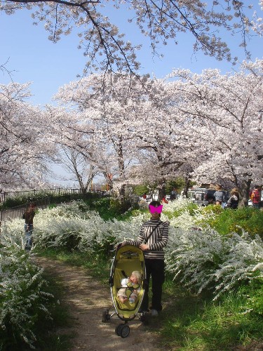で、こないだ行って感動した交野の桜を見に今度は家族で行ってきました。