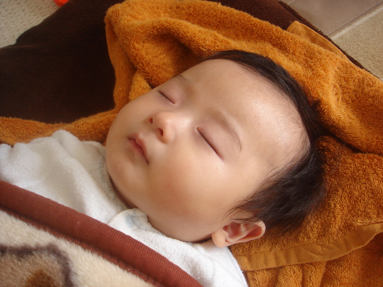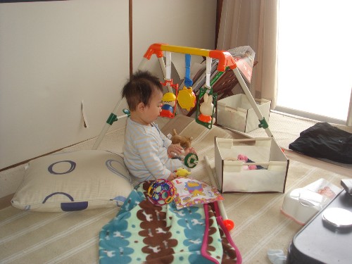 日に当たって疲れたようで、お乳を飲んだら息子は床で熟睡。